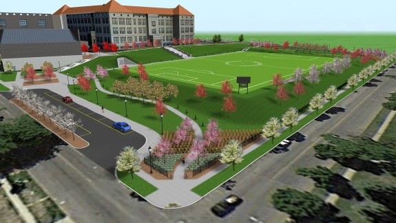 - A combination of 'pastoral and practical.' An all-weather field will be installed in the middle of the plot and would be available for use throughout the day for physical education classes and athletic contests for the Buffalo Public Schools. At the same time, the field will be surrounded by natural burms and streetscapes which will enhance the aesthetics of the western approach to our historic school building and neighborhood. This will allow spectators to be able to sit and enjoy sporting events. Students, neighbors or medical campus employees would be able enjoy a book or quiet lunch amidst some nature in the middle of the city.